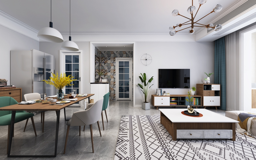 2、餐客厅作为生活区,“吃喝玩乐”都在这个空间,不建议铺实木地板,大家可以选择复合地、强化地,或是瓷砖。记住小户型一定要注意不要做波打分区,费钱还更显凌乱。选购时也不要选择太便宜的材料,真的不耐用。